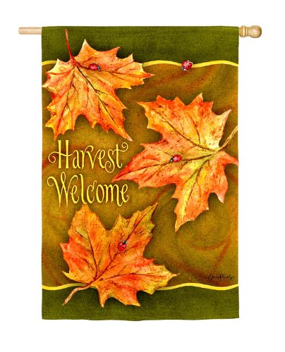 Leaf and Ladybug "Harvest Welcome" Decorative Fall Garden Flag 18" x 12.5"