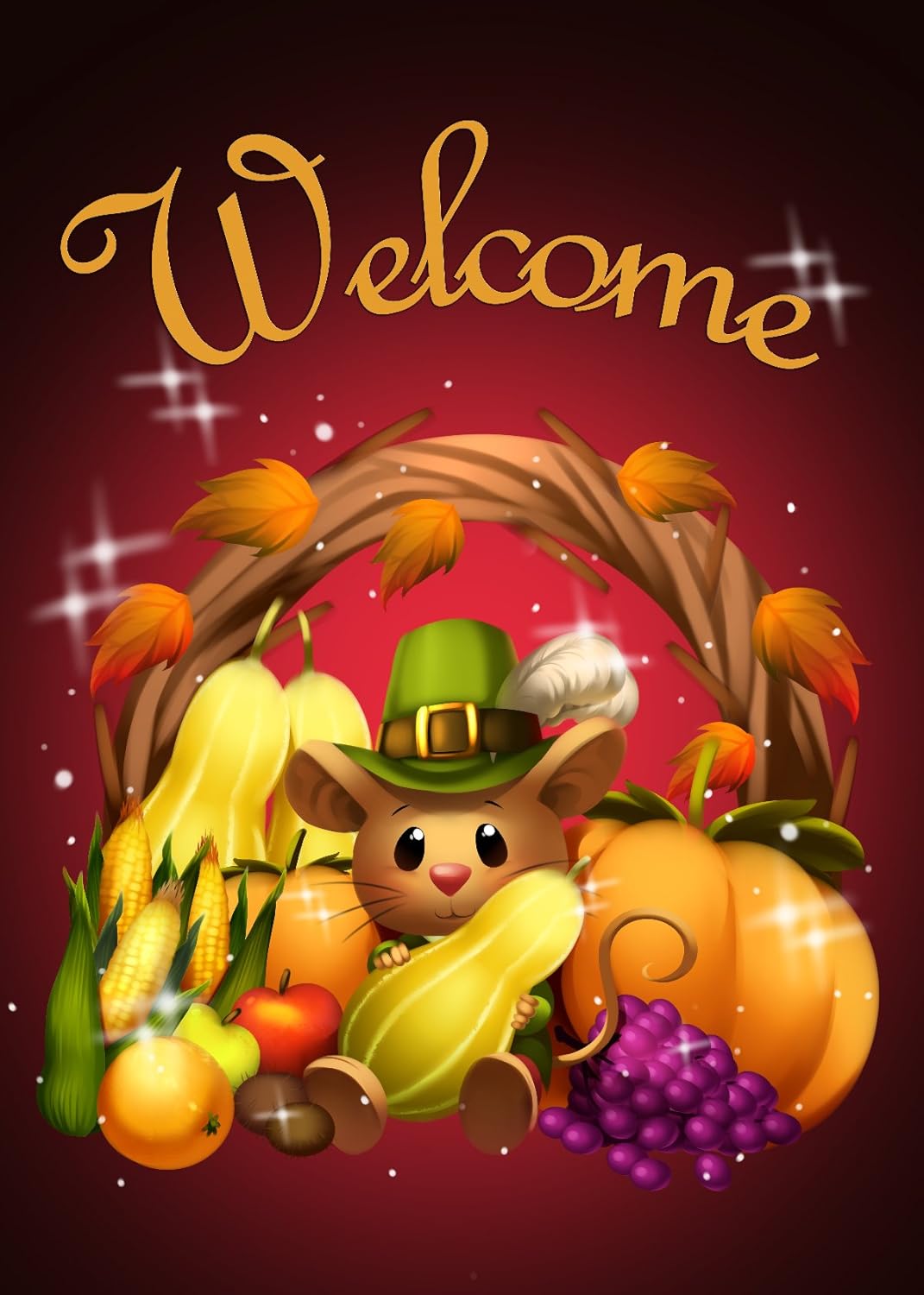 Thanksgiving Welcome Pilgrim Mouse Colorful Holiday Garden Flag Outdoor Decor, Autumn Fall Limited Edition 13" X 18"