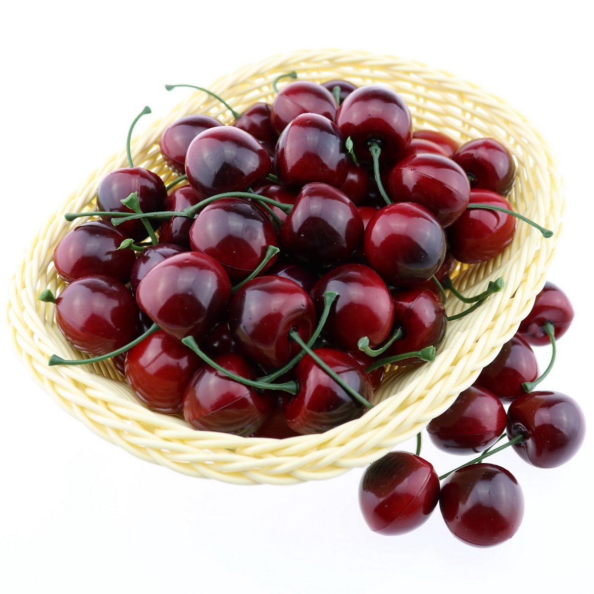 50pcs Artificial Lifelike Simulation Small Red Black Cherries Set