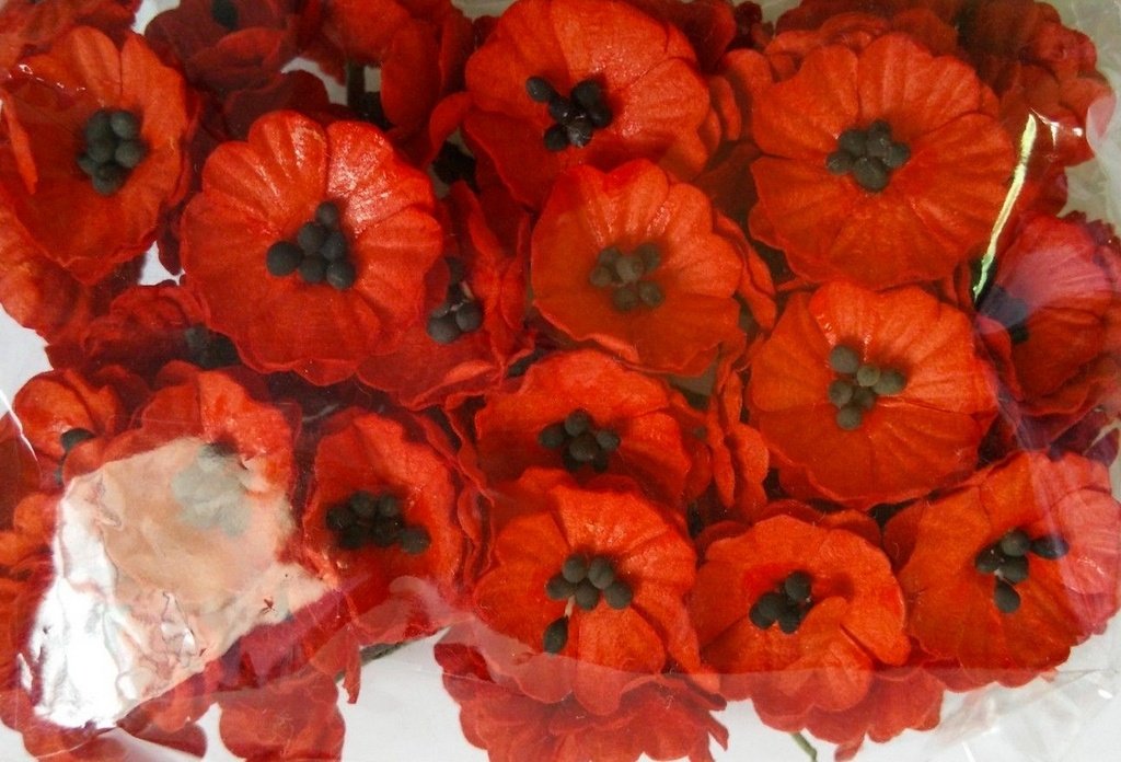 RED 50 Mulberry Paper Poppy Flower Wedding Card Craft 2 cm.
