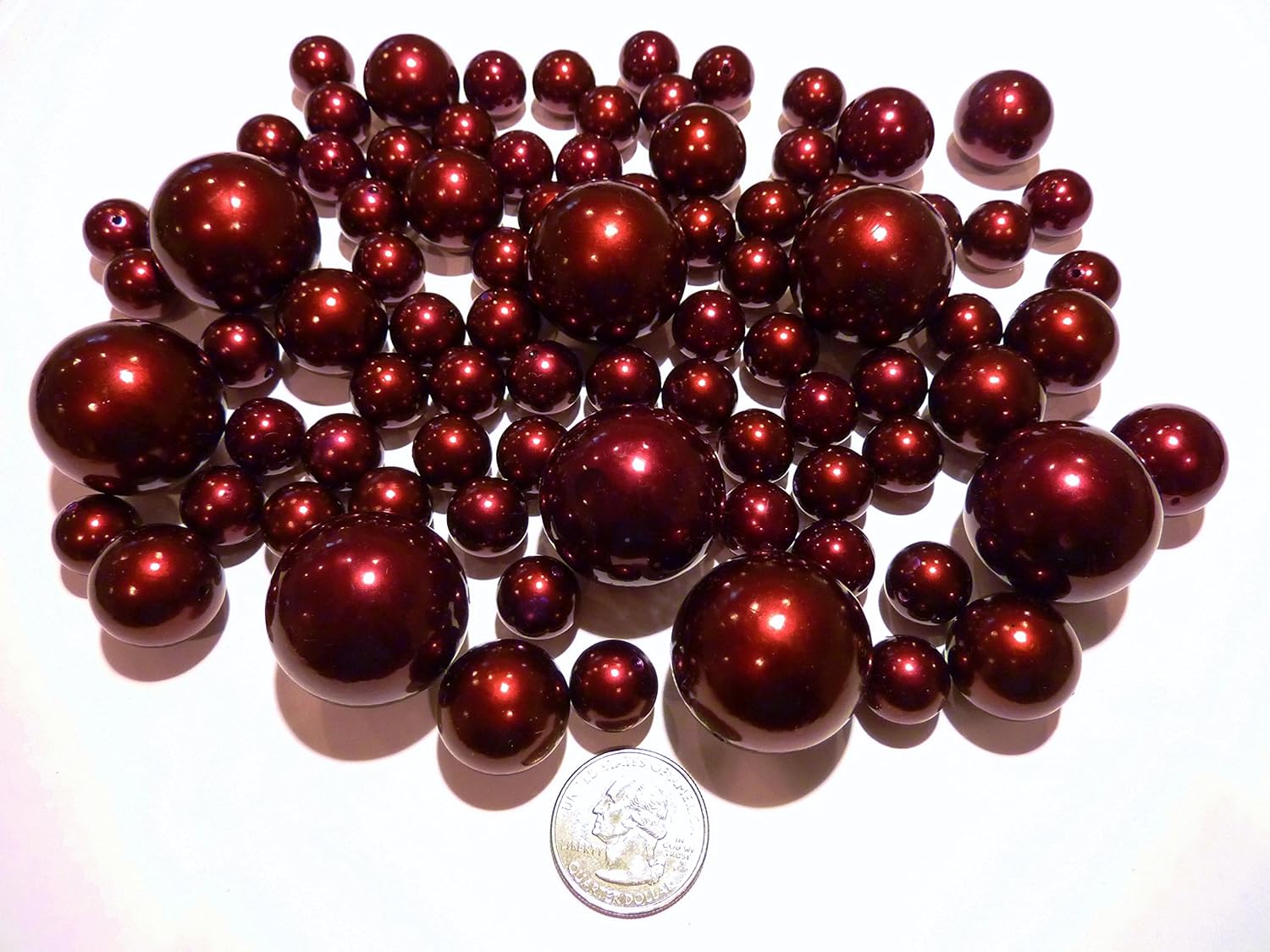 80 ALL Burgundy Red Wine Pearls Jumbo and Assorted Sizes - Vase Fillers Value Pack