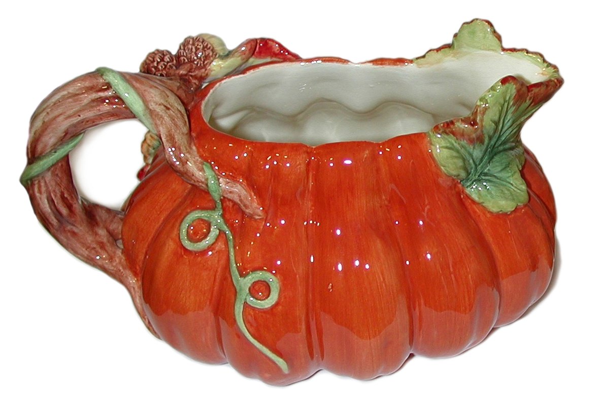 This gravy boat was so cute I could not help but paint it with all the beautiful colors of Fall. Measures 8.5 inches across by 3.75 high. It is microwaveable and dishwasher safe. It was made in Portugal. Perfect beauty for any Thanksgiving table or just for a Fall table scape.