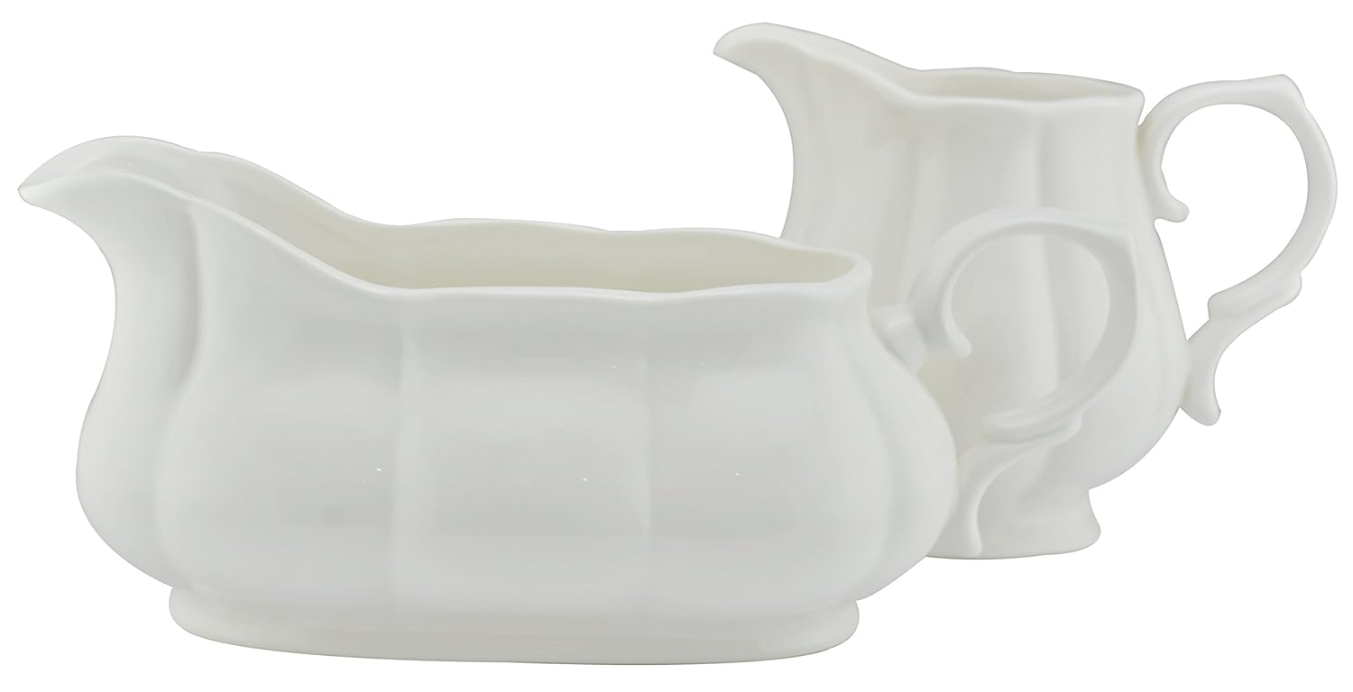 Crafted from extremely durable porcelain, good for your health. Curved designed make it more elegant and easy to pour all kinds of sauces,the other one designed like a cup, conveniently hold and use. Whiteware will match any decor, set of 2 in different size use as gravy boat and creamer. Easy to clean, oven and microwave use for versatility, dishwasher safe. The measures: 7.5 x 3 x 3 inch; 3.75 x 3.2 x 3.2 inch. Perfect gift, Christmas present and everyday tableware.
