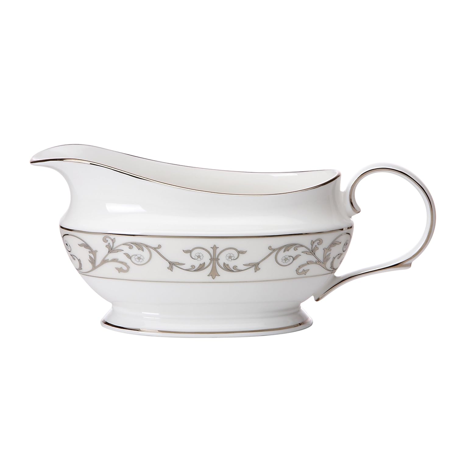 White-bodied china serves as the pristine backdrop for a flowing vine and floral motif on this Autumn Legacy Sauce Boat and Stand from Lenox. The elegant motif both encircles the sauce boat and borders the boat stand. Crafted of fine bone china and accented with precious platinum and hand-applied enamel jeweling, the sauce boat and stand is made in the USA by Lenox. Crafted of Lenox fine bone china Accented with precious platinum and enamel jeweling Dishwasher safe Made in the USA by Lenox Two-piece set