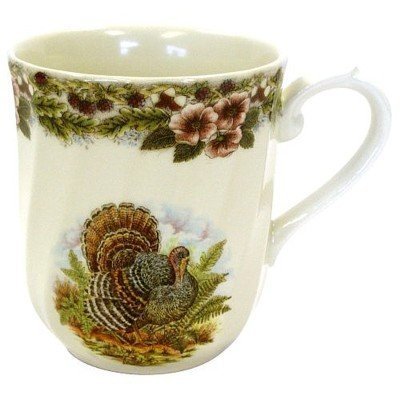 Set/4 Mugs Queen's Thanskgiving Myott by Churchill, 4 3/4" tall, 12 oz capacity, Features Myott Archives Thanksgiving Turkey Engraving