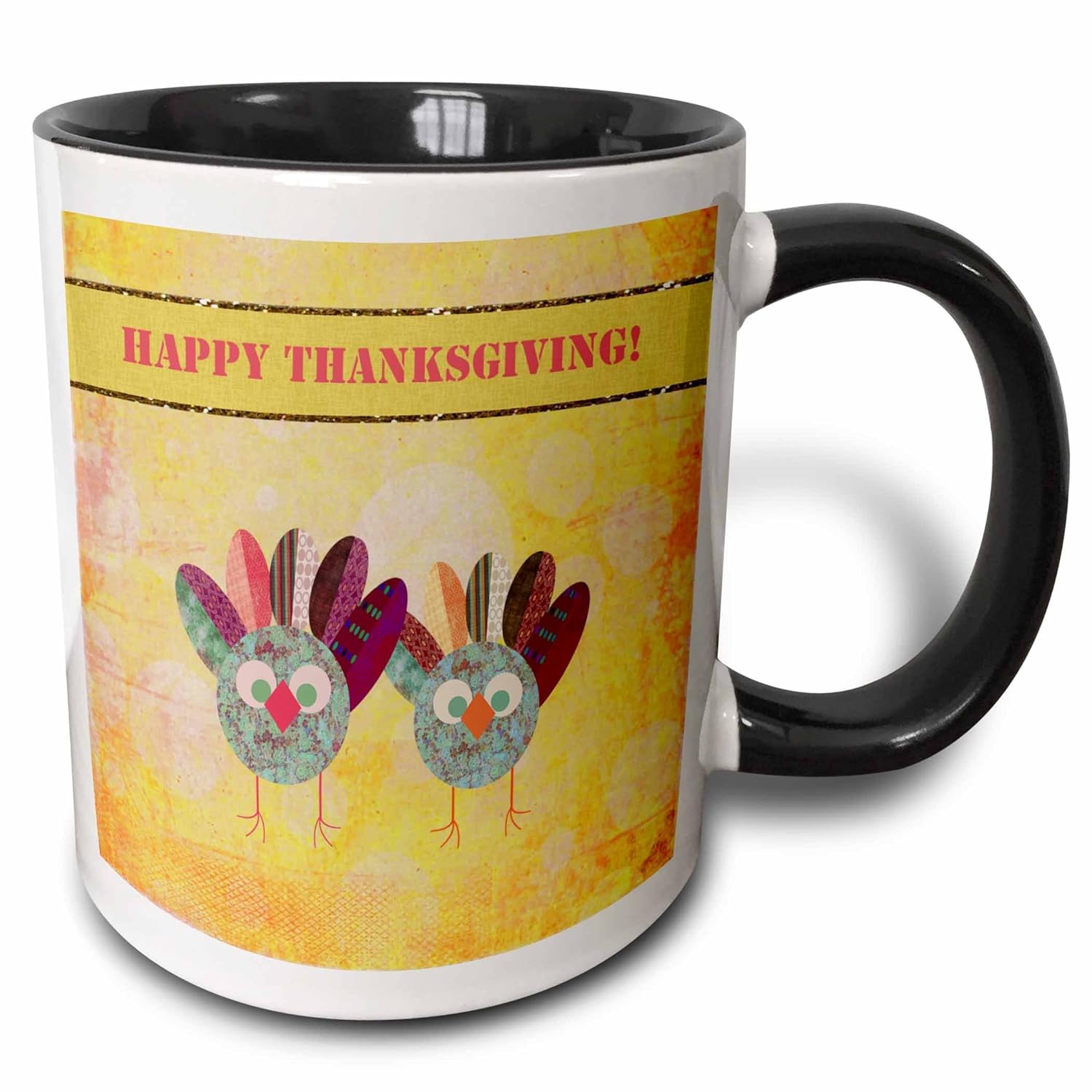 Holidays Thanksgiving - Thanksgiving Colorful Turkeys - 11oz Two-Tone Black Mug