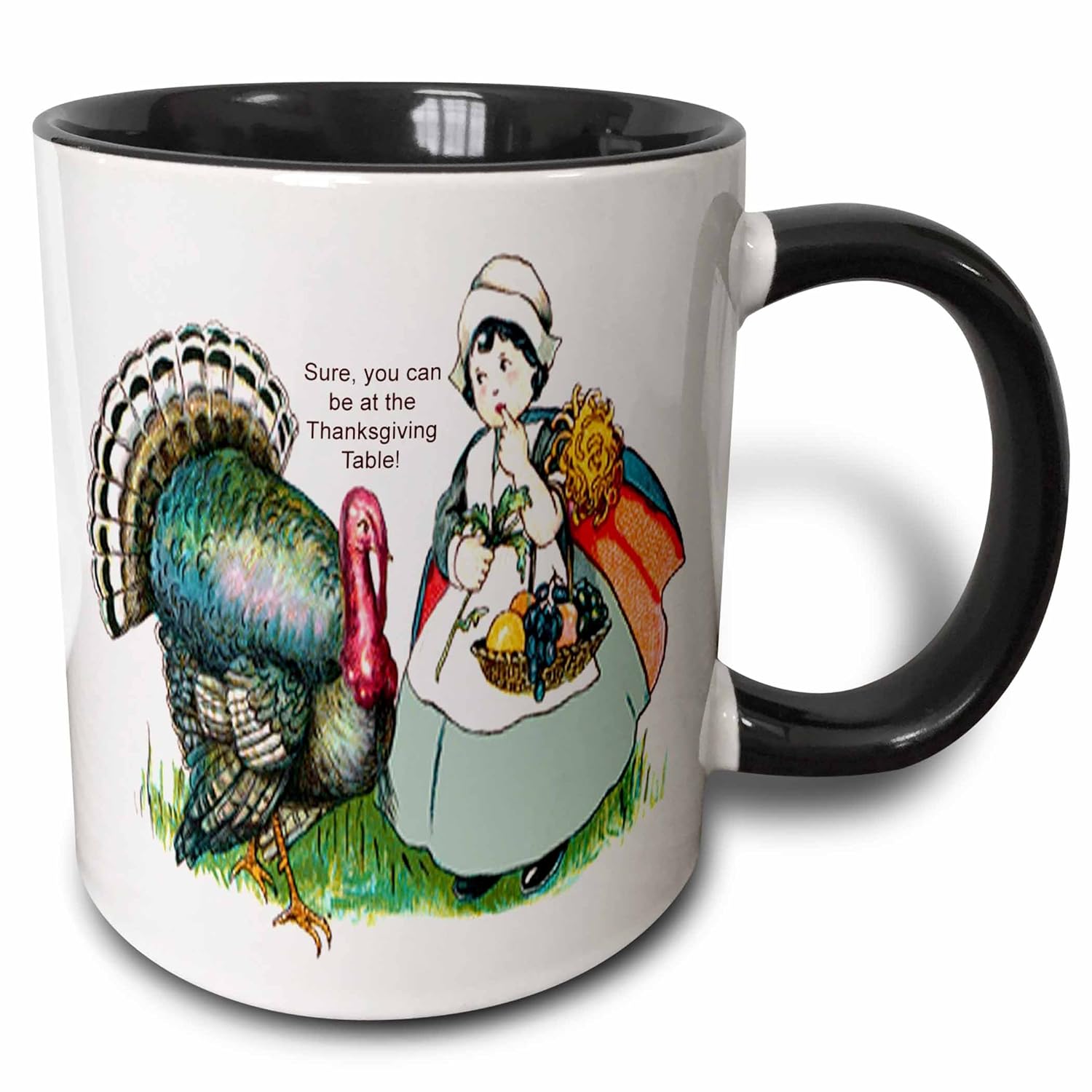 Autumn and Thanksgiving - Vintage Thanksgiving Turkey and Girl - 11oz Two-Tone Black Mug
